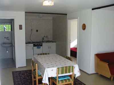 Doppelzimmer, Essecke, Küche, Dusche, Toilette, Terrasse.