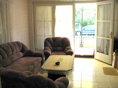 Wohnzimmer mit Fernseher (Sat. Programme), Terrasse...