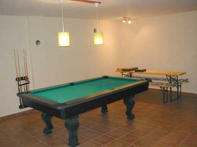der von den Gästen beliebte Spielraum mit einen Billiardtisch,
